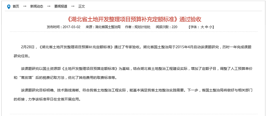 《湖北省土地開(kāi)發(fā)整理項(xiàng)目預(yù)算補(bǔ)充定額標(biāo)準(zhǔn)》通過(guò)驗(yàn)收