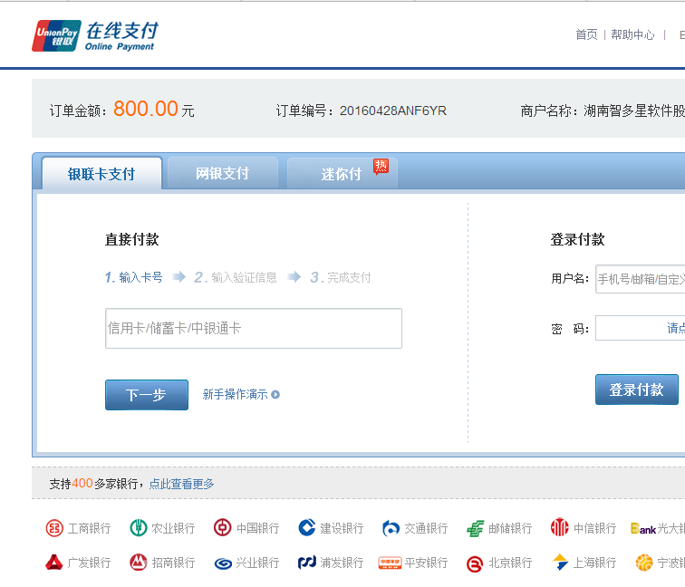 第七步(1):如果您選擇銀聯(lián)支付,(您任何一張帶有銀聯(lián)標(biāo)識(shí)的儲(chǔ)蓄卡都能通過(guò)此種方式付款,無(wú)需開(kāi)通網(wǎng)銀):在此界面上,您可以選擇“銀聯(lián)卡支付”,但需要事先開(kāi)通網(wǎng)絡(luò)在線支付功能。如果您已開(kāi)通了網(wǎng)銀,您最好選擇“網(wǎng)銀支付”,這樣既快捷又方便。選擇好支付方式,填寫(xiě)好相應(yīng)信息,您按相應(yīng)提示即可完成支付。